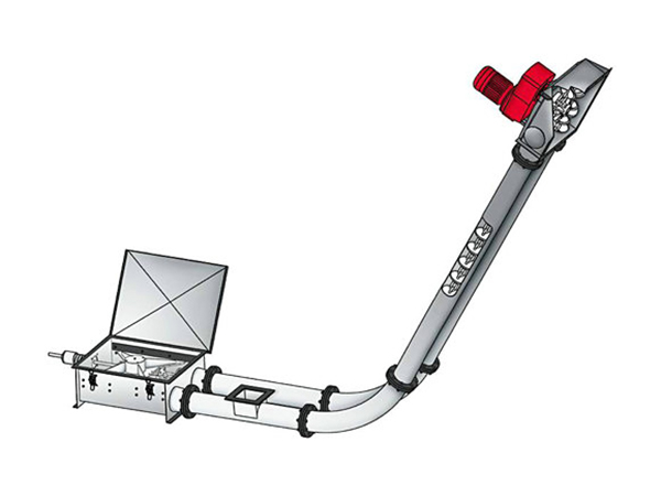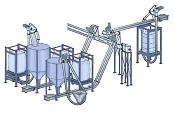 管鏈?zhǔn)捷斔蜋C(jī)是輸送粉狀、小顆粒狀及小塊狀等散狀物料的連續(xù)輸送設(shè)備,在密閉管道內(nèi),以鏈片為傳動(dòng)構(gòu)件帶動(dòng)物料沿管道運(yùn)動(dòng)。當(dāng)水平輸送時(shí),物料顆粒受到鏈片在運(yùn)動(dòng)方向的能力。當(dāng)料層間的內(nèi)摩擦力大于物料與管壁的外摩擦力時(shí),物料就隨鏈片向前運(yùn)動(dòng),形成穩(wěn)定的料流;當(dāng)垂直輸送時(shí),管內(nèi)物料顆粒受鏈片向上推力,因?yàn)橄虏拷o料阻止上部物料下滑,產(chǎn)生了橫向側(cè)壓力,所以增強(qiáng)了物料的內(nèi)摩擦力,當(dāng)物料間的內(nèi)摩擦力大于物料與管內(nèi)壁外摩擦力及物料自重時(shí),物料就隨鏈片向上輸送,形成連續(xù)料流。 管鏈輸送系統(tǒng)的優(yōu)勢(shì): (1)結(jié)構(gòu)緊湊,占用空間小,可以三維改變輸送方向。 (2)出口不必設(shè)置除塵器,在輸送物料時(shí)呆充裝氣體。 (3)物料沿著管子平滑輸送,物料破損少,緩慢的彎道輸送使很少的物料顆粒產(chǎn)生碎屑。 (4)能耗低——運(yùn)行成本經(jīng)濟(jì),整套系統(tǒng)只有一個(gè)電機(jī)來帶動(dòng)。 (5)不會(huì)產(chǎn)生系統(tǒng)堵塞——適合輸送多種形態(tài)的物料。