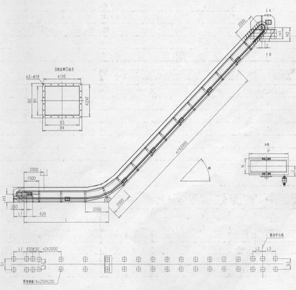SDBF系列鏈斗輸送機主要安裝尺寸表